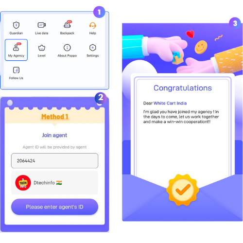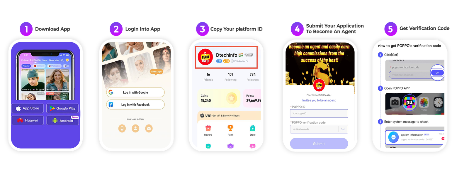 Notify Dtechinfo for faster processing. Send your Poppo ID on WhatsApp at 7719641909 for quick approval. Check the images below to clearly understand the registration steps.